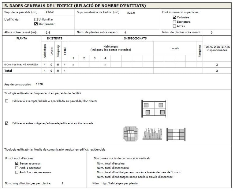 Inspección técnica que evalúa el estado de conservación de un edificio.